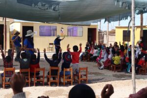 Necesariamente enseñar a tocar diferentes instrumentos. Enseñar a cantar y participar en eventos que organiza la fundación.